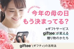 eギフトのパイオニアである「giftee®(ギフティ)」は、大手カフェチェーンやコンビニなどの人気ショップのデジタルチケットから、本格的なフラワーギフト、体験型カタログまで幅広くラインナップ。メッセージカードを添えてURLを送るだけで、お母さんは自分の好きなタイミングでギフトを受け取れるという「スマートな贈答体験」を提供しています。