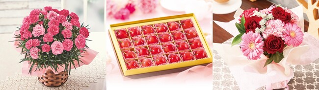 毎年5月の恒例行事である「母の日」。お母さんへ日頃の感謝の気持ちを伝えたいけれど、ギフト選びに悩む方も多いのではないでしょうか。食品から生花まで取り揃えるベルーナグルメより、今年も母の日に最適なギフトを発売しました。花瓶いらずでそのまま飾ることができる、新商品の「そのまま飾れる大人かわいいよくばりブーケ」や、5年連続母の日人気No.1(※)の花色が変化する「カーネーション さくらもなか」、『お母さんありがとう』ラッピングの仕様で贈答箱にもこだわった、5年連続食品カテゴリ人気No.1(※)の「さくらんぼ宝石箱 山形の佐藤錦」など豊富なラインナップで展開しています。